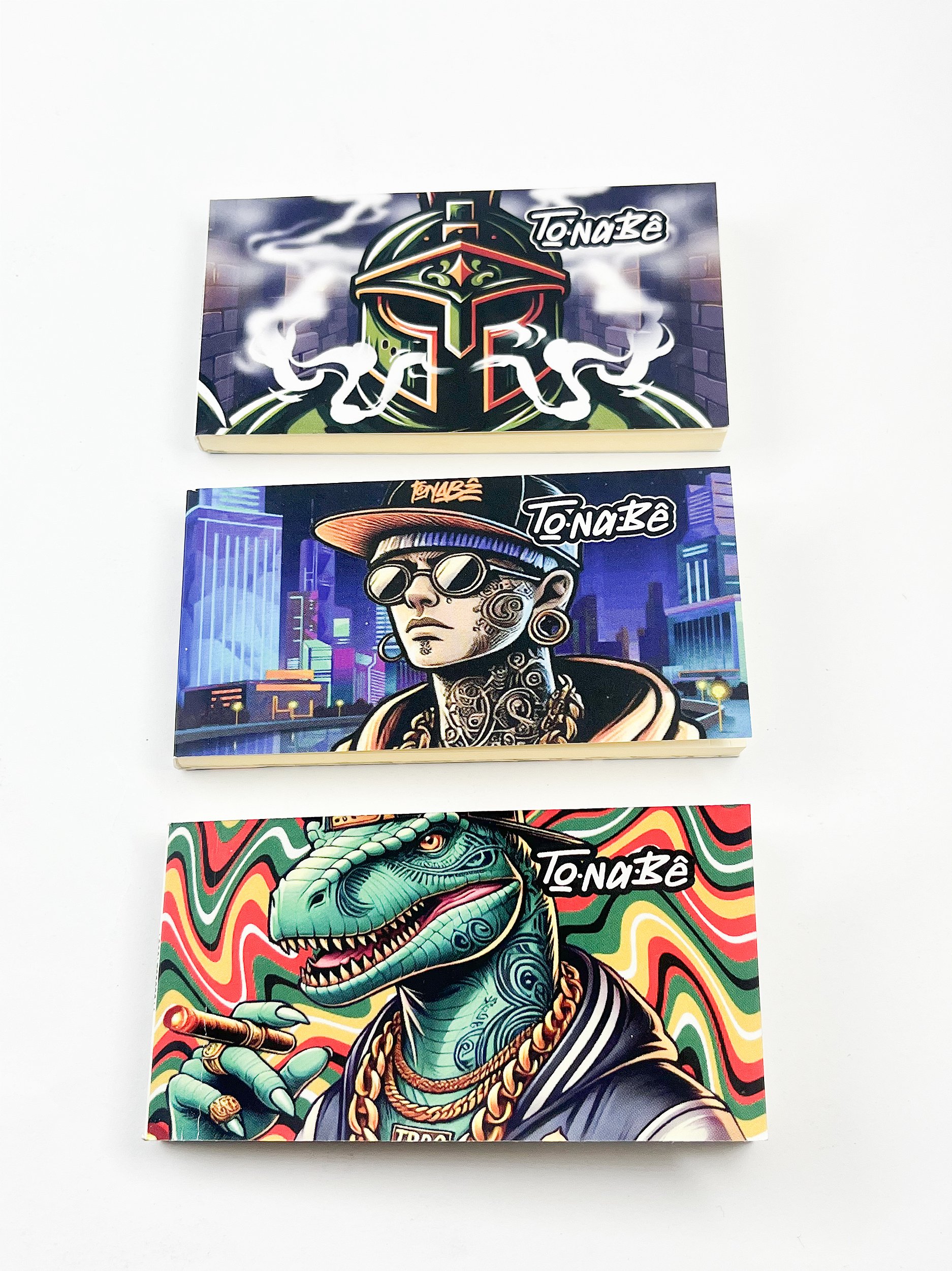 Com estampas exclusivas e vibrantes da TonaBê, cada piteira traz uma identidade visual marcante, misturando street art, psicodelia e cultura urbana em designs colecionáveis.