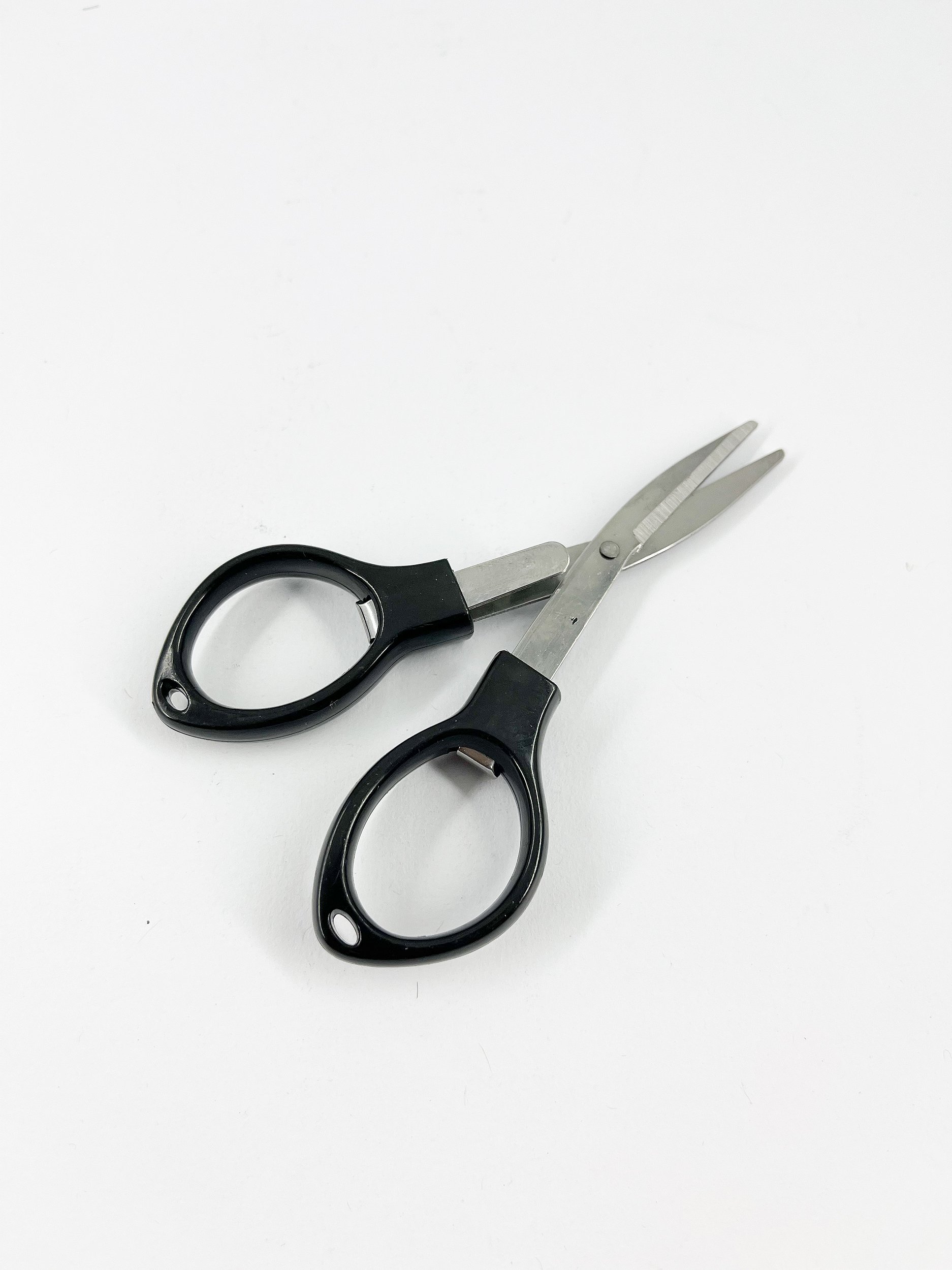 A tesoura de metal dobrável da Sessãozada, possui 10cm aberta e 8,5 fechada, uma lâmina de aço inoxidável e o dedal em policarbonato de alta resistência. Garante praticidade, mobilidade e durabilidade.