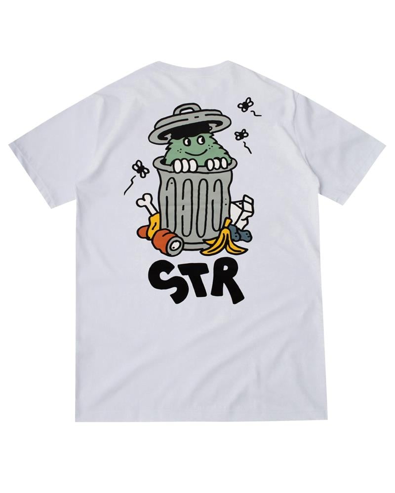 A Stranger Trash Can traz uma estética divertida e irreverente, com arte exclusiva nas costas mostrando um personagem saindo de uma lixeira em meio a um cenário caótico — perfeita para quem curte streetwear com humor e identidade visual marcante. Na parte frontal, o logo STR aparece de forma minimalista, garantindo estilo sem exageros.